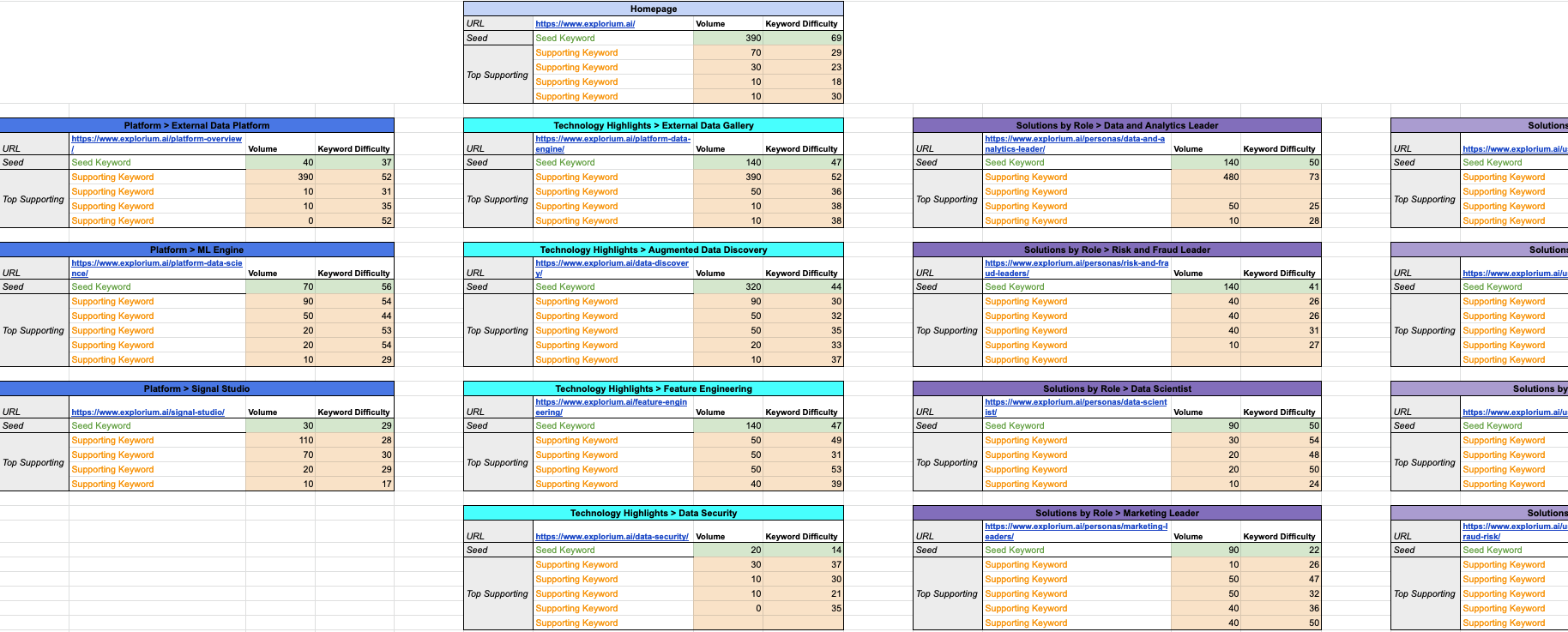 Explorium provides external data to generate, enrich, and prepare data sets for analytics and machine learning with its automated external data management platform. Explorium needed to create a foundational keyword strategy for its domain in order to guide SEO across existing page optimization, content creation, and competitive positioning to unify a data-driven SEO blueprint for all organic growth activities.